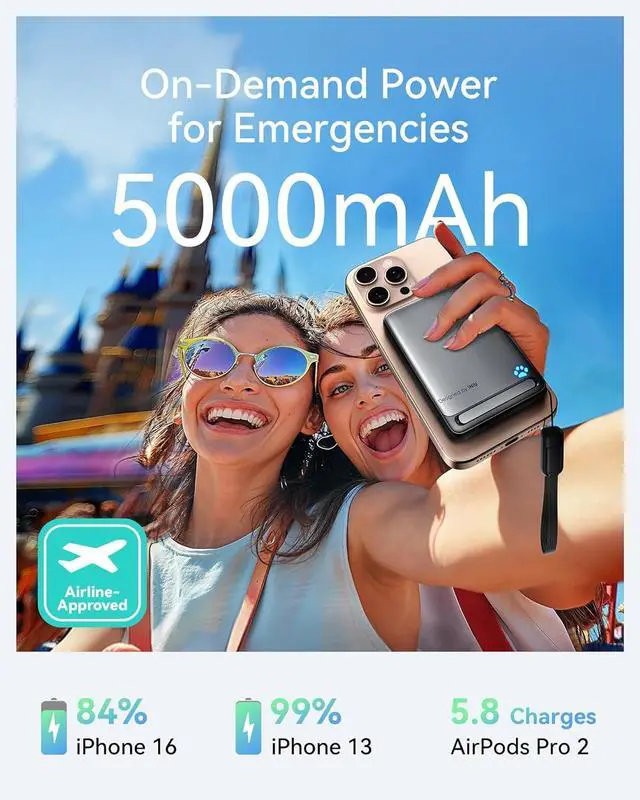 Ultra-Compact Power: This TSA-compliant 5,000mAh power bank extends your iPhone's battery life, letting you stream videos, chat with friends, and navigate your day worry-free.