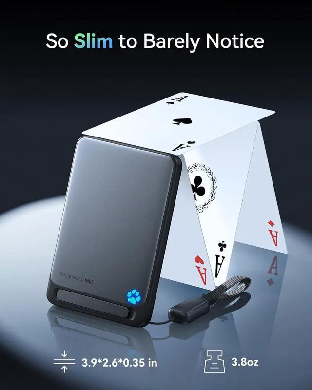 Market's Slimmest 5K Magnetic Power Bank: INIU's exclusive TinyCell technology enables an ultra-slim 0.35in 5,000mAh power bank perfectly fitting into your purse or pocket for seamless portability without the bulk.