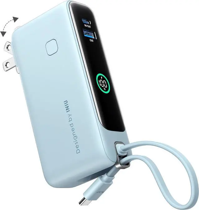 INIU 3-in-1 Portable Charger, Small 10000mah 30W Fast Charging Power Bank with Built-in USB C Cable and Foldable AC Plug, Flight Cruise Ship Travel Phone Charger for College Students Boys Girls, Blue
