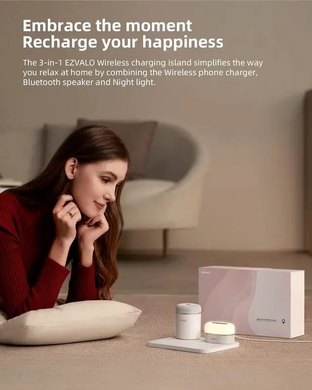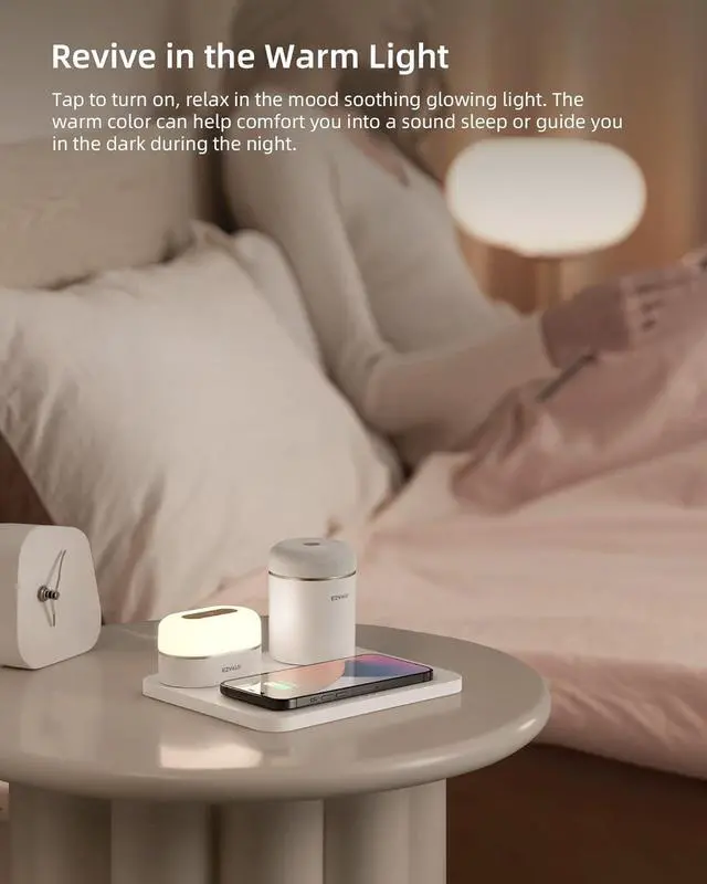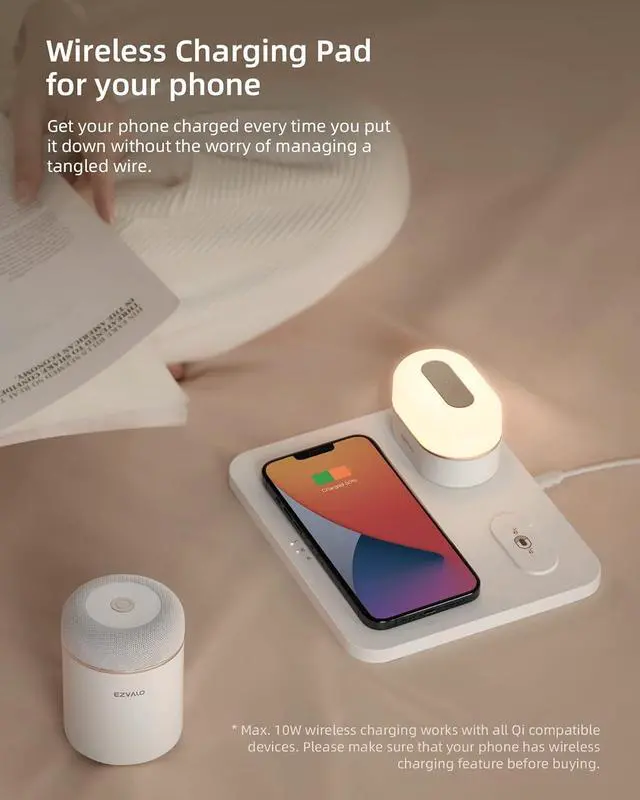 Nightstand, kitchen counter, work desk, EZVALO 3-in-1 Wireless Charging Sation settles right in. Place your phone on, and enjoy the 10W fast wireless charging.