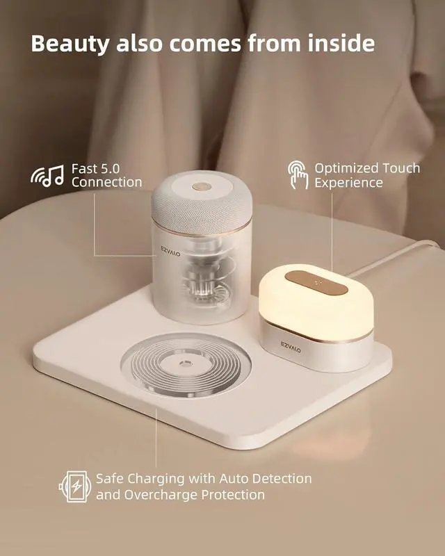 EZVALO Under Cabinet Lights EZVALO Puck Lights with Remote EZVALO Under Cabinet Lights Recharge the Phone Battery Relax with Music Anywhere Revive in the Warm Light Exclusive Temperature Control Tap to Turn on the Night Light Fast 5.0 Connection