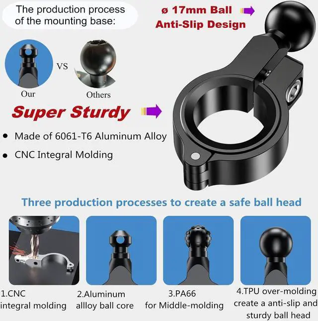 4. This motorcycle bike phone mount holder suitable for mounting on motorcycle bike atv bicycle harley davidson mountain bike stroller dirt bike scooter trek bike electric scooter road bike golf cart
