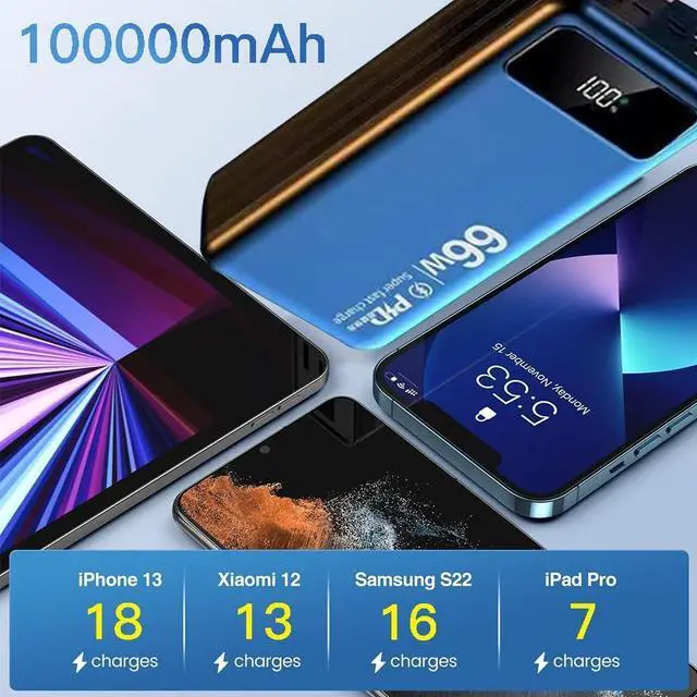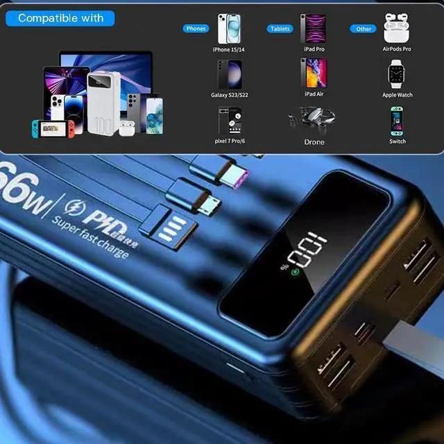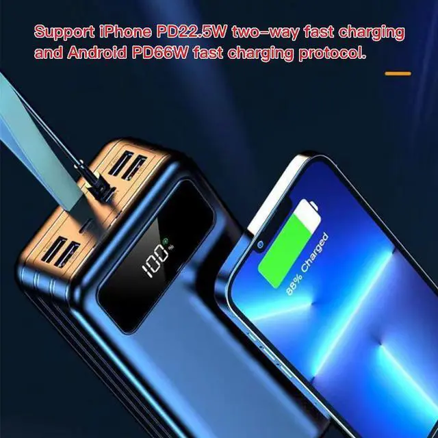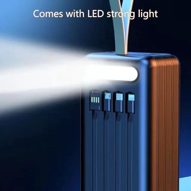 5.0 out of 5 stars100000mAh Power Bank Fast Charging Portable Charger, External Battery Built in 3 Output and 1 Input Cables and Flashlight, Compatible with Smartphones and Small Devices(Size:80000Mah,Color:Black)