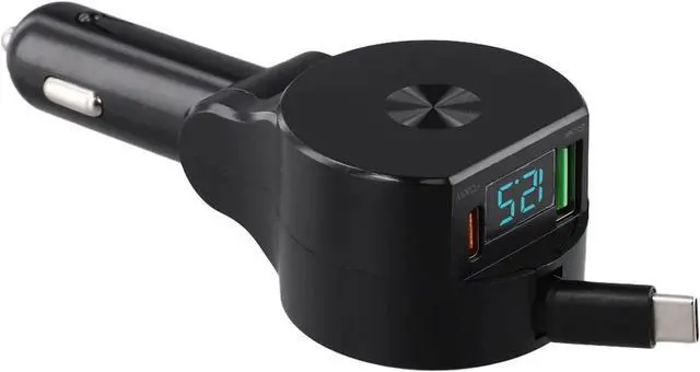 3 in 1 Car Charger Voltage Display Type-C Output Charging for 12/24V Cars