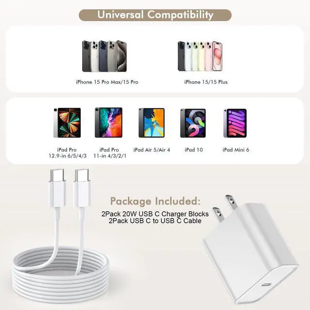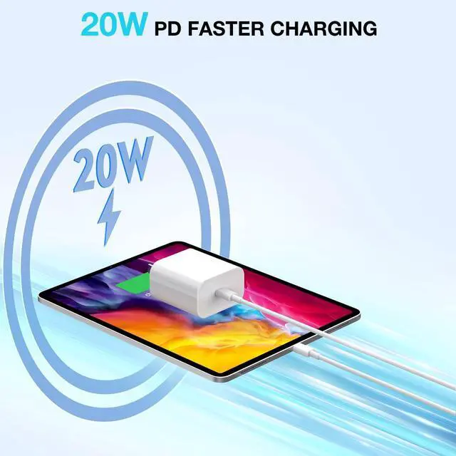 [Widely Compatible ]This 20W type c charger fast charging support fast charging for iPhone 16/16 Plus/16 Pro/16 Pro Max, iPhone 15/15 Plus/15 Pro/15 Pro Max, New 2021 iPad Mini 6th Generation, 2021/2020/2018 iPad Pro 12.9 in 5th/4th/3rd Generation, iPad Pro 11 in 3rd/2nd/1st Generation(2021/2020/2018), iPad Air 4th generation (2020).