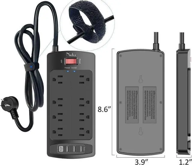 8AC Surge Protector Outlets- The 3 level complementary Surge Protector Circuit which composed of TVS (transient voltage suppressor), MOV (metal oxide varistor), GDT (gas discharge tube), with minimum 2700 Joules energy absorbing capacity, could protect your devices much more quickly and reliably than other brands 1 level MOV Surge Protection Circuits.