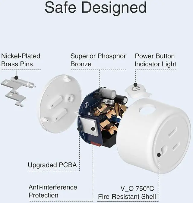 Multiple Safeguards Design: Smart mini plug comes with fire prevention and overload protection. The surge protector also has approved ETL and FCC certifications. Supports 100~240V, 10A maximum load. The circuit breaker automatically breaks off when the current exceeds the threshold, preventing plugged-in devices from damage. The PC V0 materials can protect your home safely.