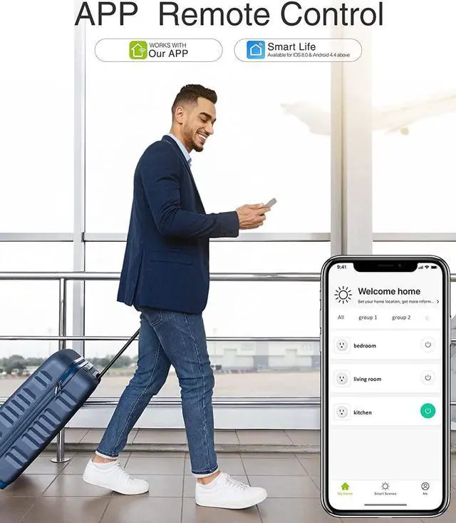 App Remote Control: Use the App to control the smart plug through your smartphone (iOS 8.0 or above/Android 4.4 or above). You can control and check them whenever and wherever you are, just plug in the Wi-Fi plugs and add them to your Mobile App. Only support 2.4GH z Wi-Fi connection.