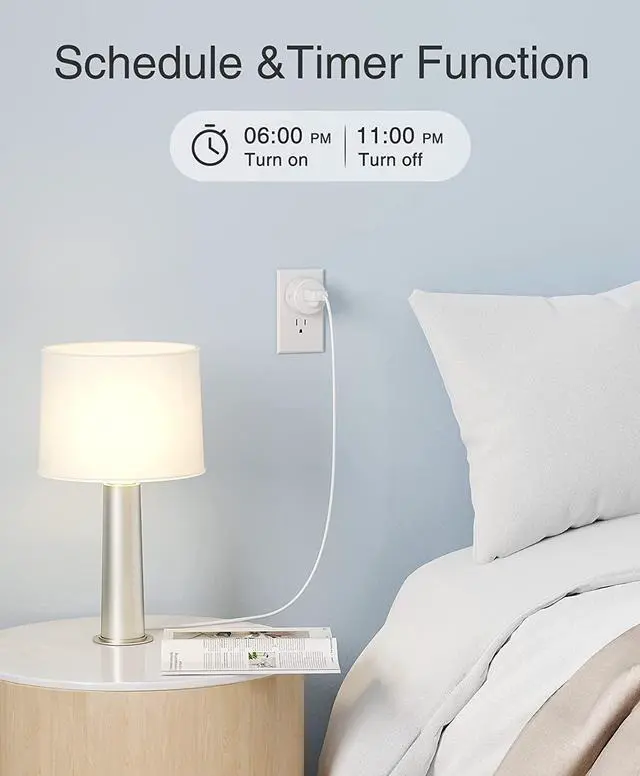 Hands-Free Voice Control: The Smart plugs that work with Alexa and Google Home. Just say to Amazon Alexa or Hey Google to turn on or off your electronic devices connected with the Wi-Fi smart sockets. The smart plug works with any 2.4G Wi-Fi router without the need for a separate hub or paid subscription service.
