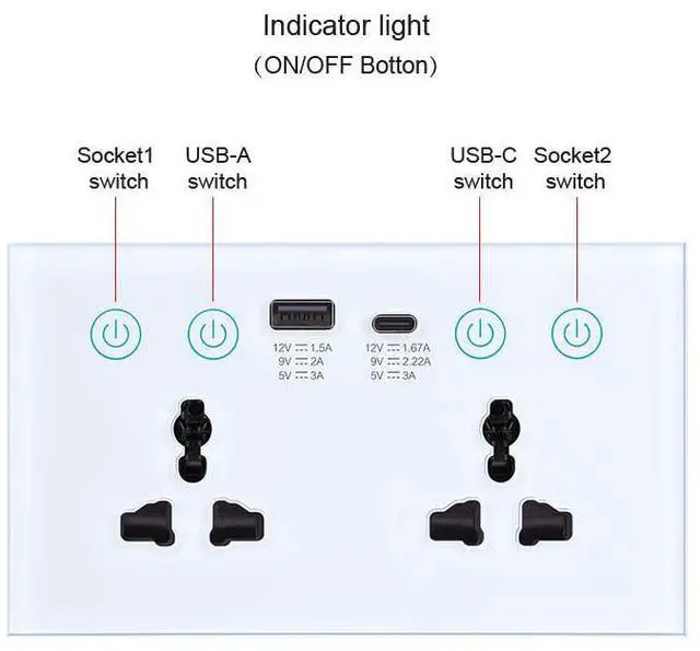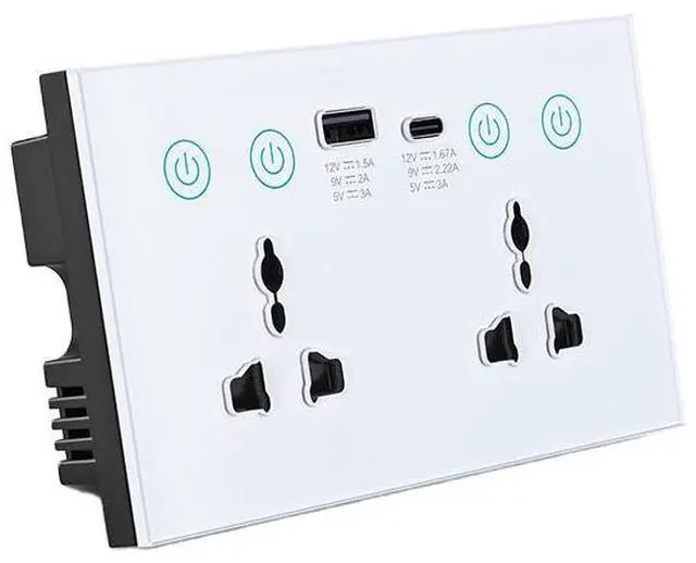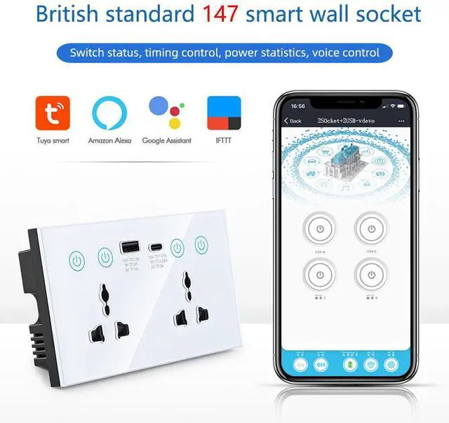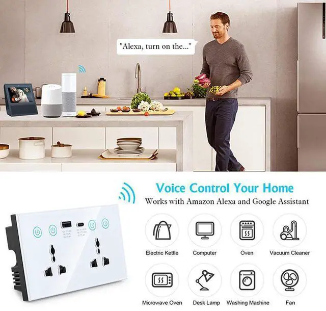 Smart Plug Socket 2 Outlets USB Type-C Ports 13A/20A Tuya Smart Life Alexa Voice Control Universal Wall Socket