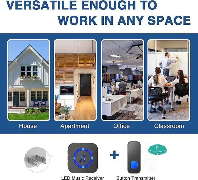 EASY TO INSTALL & EXPANDABLE: wireless bell set can be easily installed by attaching the bell button to a wall without wiring; You could install it anywhere inside, for home, garden, office, store, mailbox etc.