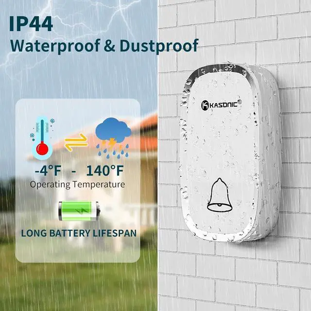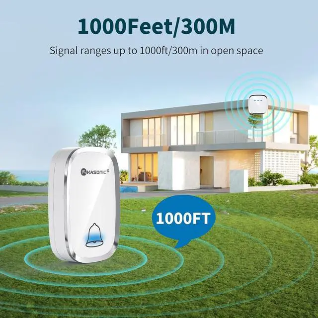 Long Operating Range - Kasonic Wireless Door Bell operate range up to 1, 000FT/300M in open area ensures you to hear the bell and answer the door in time. No need to worry about interfering with other devices in your home or neighbors.