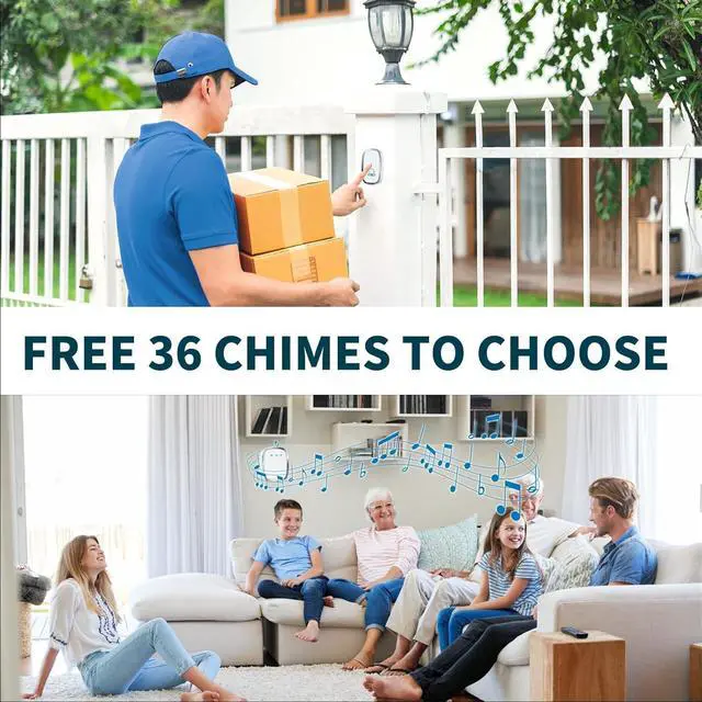 36 Melodies & 4 Adjustable Volume - The Door Bell offers a wide selection of 36 chimes and 4 level adjustable volume (0 dB to 110 dB) to meet your different needs. Remembers your last melody and volume level after a power outage; memory function let you no need to reset.