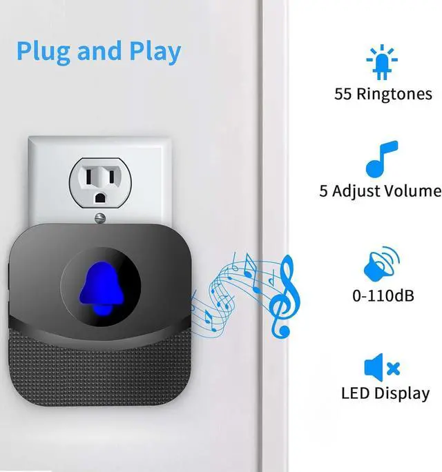 Easy-to-Use Doorbell: Simply insert the receivers into the sockets and attach the transmitter to the front door with the included double-sided tape or screws and you're ready to use.