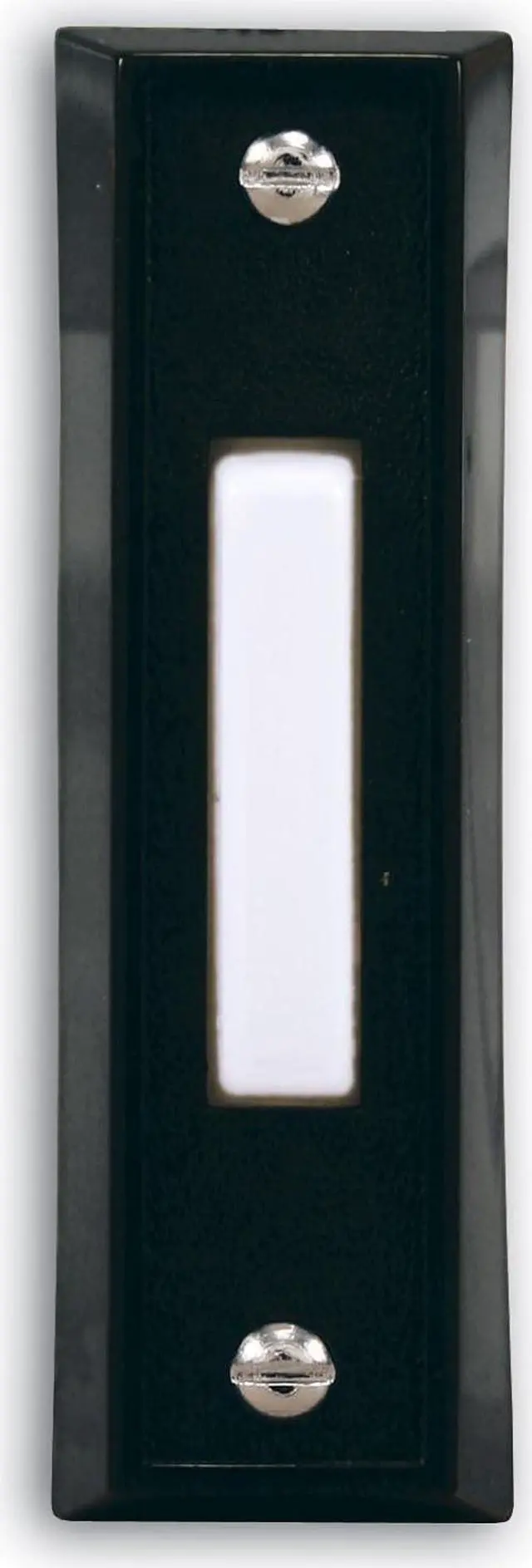 Black finish Plastic Surface mount Note: There are no wires included with the push button Low Voltage Hardwired Push Button Black Finish with White Center Bar Unlighted - Surface Mount Works with any Heath/Zenith Low Voltage Chime System