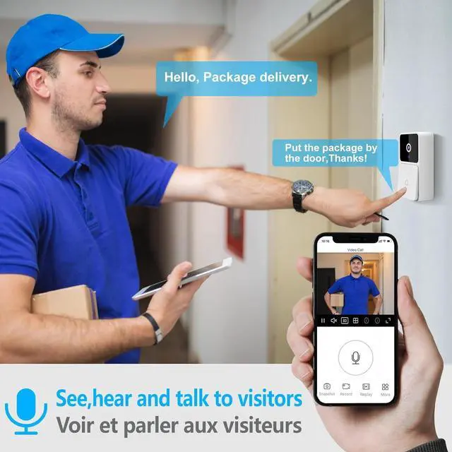 [ SMART DOORBELL WITH 2 WAY VOICE INTERCOM ] Stay connected to your front door from anywhere with our WiFi-enabled doorbell camera wireless, allowing you to see, hear, and speak to visitors through your smartphone