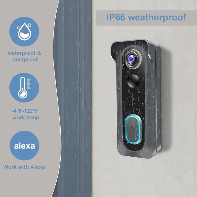 Durable Battery & 2.4G Wi-Fi ConnectionIP66 Weather video doorbell built-in rechargeable batteries, 2-3 months battery lifespan per charge. The door bell camera is designed for a consistent 2.4G hz WiFi connection (Not support 5GHz WiFi), experience uninterrupted video recording and monitoring.