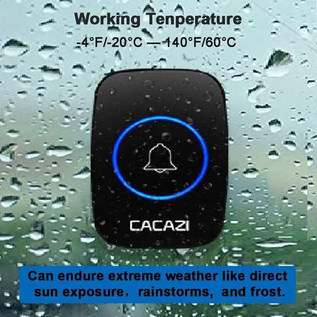 Classic Design Wireless DoorbellFashionable modern design with simplicity and elegant. High-quality materials keeps itself from hard weather conditions like rainstorms, direct sun exposure and frost.