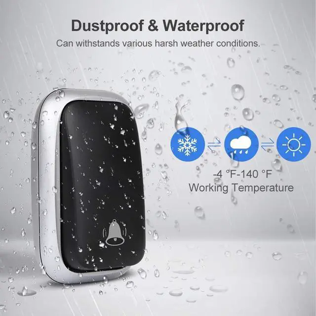 Quality Assurance & Satisfied Service our plug in doorbell is dustproof and IP44 waterproof and can withstand various harsh weather conditions. The push button can reach a maximum service life of 20 years of up to 150, 000 clicks. We also offer 2 years warranty plus 60 days satisfaction or return policy. If you have any problems with our products, please contact us to find a satisfactory solution.