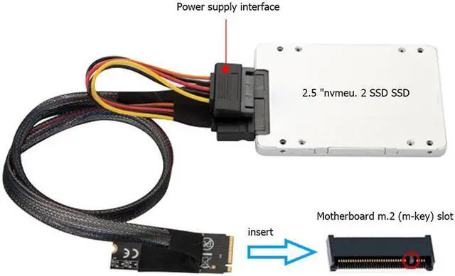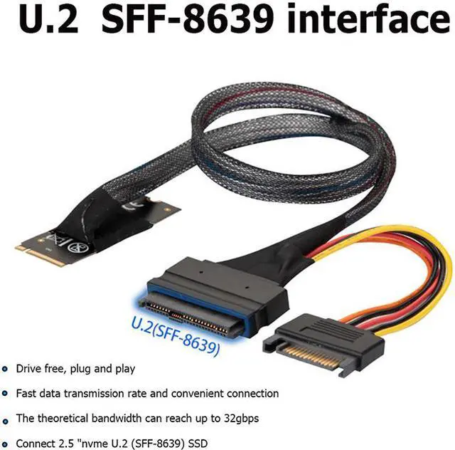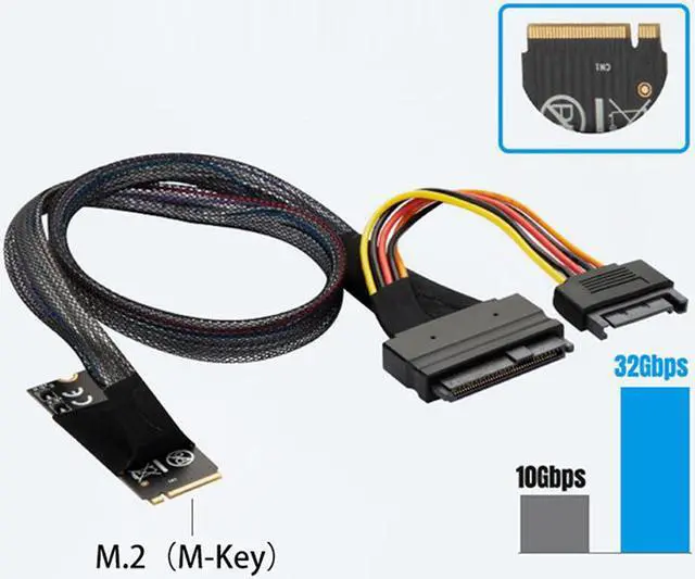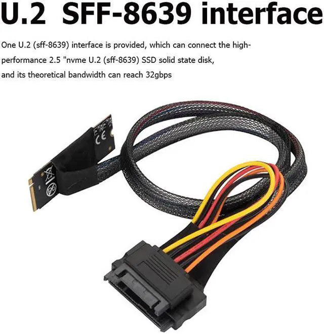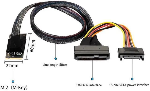 1 x M.2 M-key to U.2 SFF-8639 Cable with 15Pin Female SATA Connector