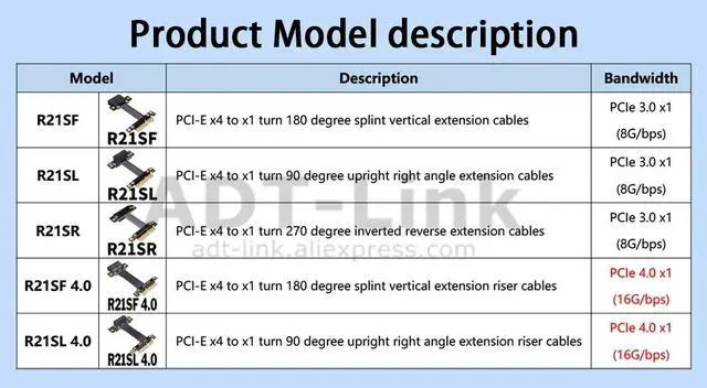 R21SF 4.0 , R21SL 4.0 (PCIe4.0 x1 , 16G/bps (Max.))