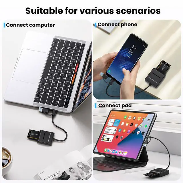 Equipped with both USB 3.0 (Type-A) and USB-C connectors, this adapter cable ensures seamless connection to virtually any modern devicelaptops, desktops, MacBooks, tablets, and even smartphones (OTG supported). No more worrying about port compatibility.