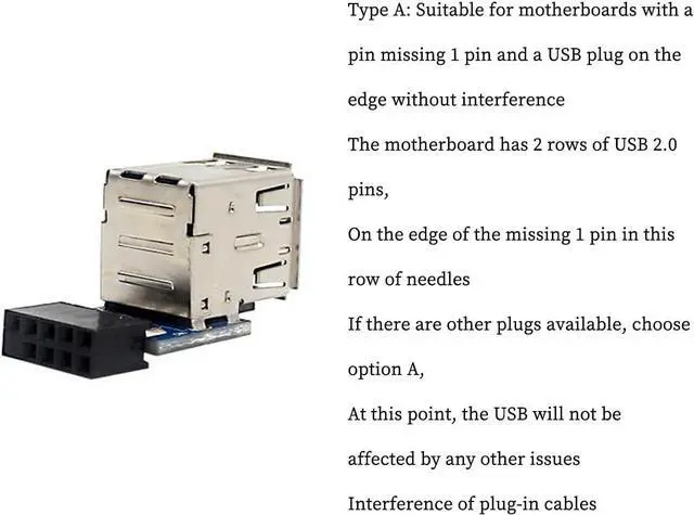 Model A: Applicable to the motherboard pin lack of 1Pin, there are Plug-in cable on the side, USB is not interfered with!