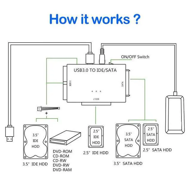 USB 3.0 to SATA & IDE Hard Disk Adapter Converter Cable for 2.5/3.5 Inch HDD/SSD Plastic Housing PVC Jacket 5Gbps Windows/Mac