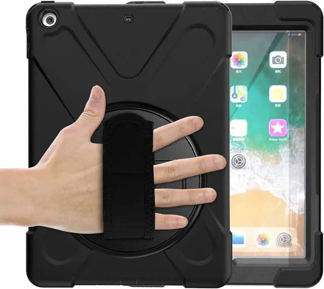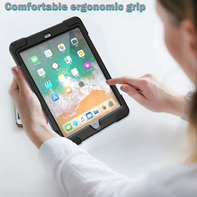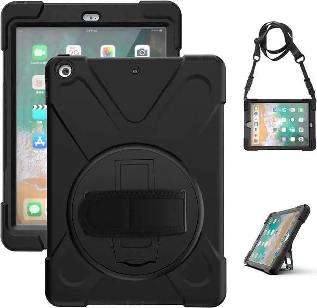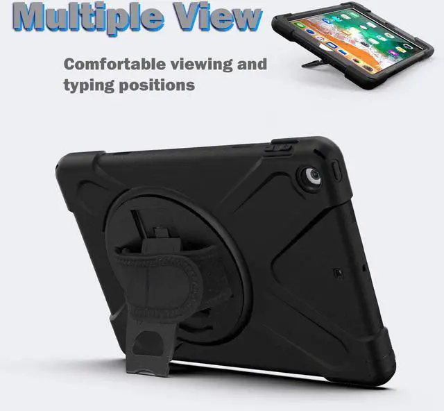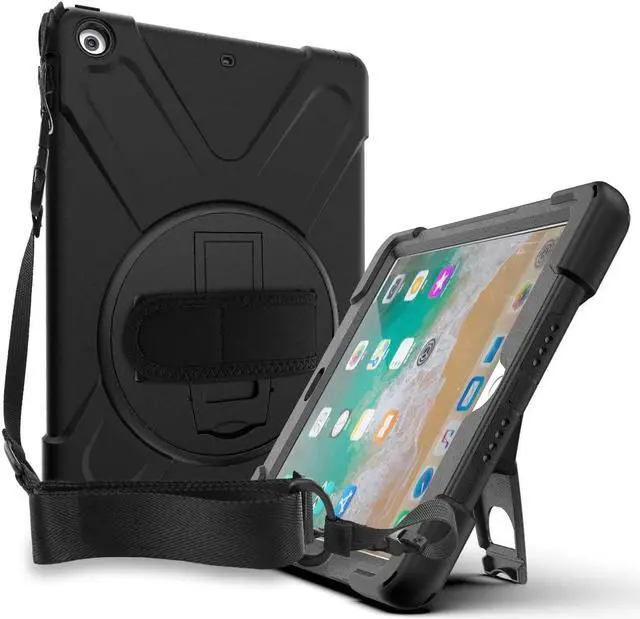 Easily Charge/Sync, Stand & Carry - For your convenience, this cover have cut-outs giving you access to your tablets charging port & earphone jack making this case easy to use and very convenient. Built-in kickstand that flips out and rotates giving you multiple viewing options so you can comfortably use your tablet device allowing you to enjoy, play, and have fun. Includes a removable shoulder-strap so you can carry your iPad 5th and 6th gen.