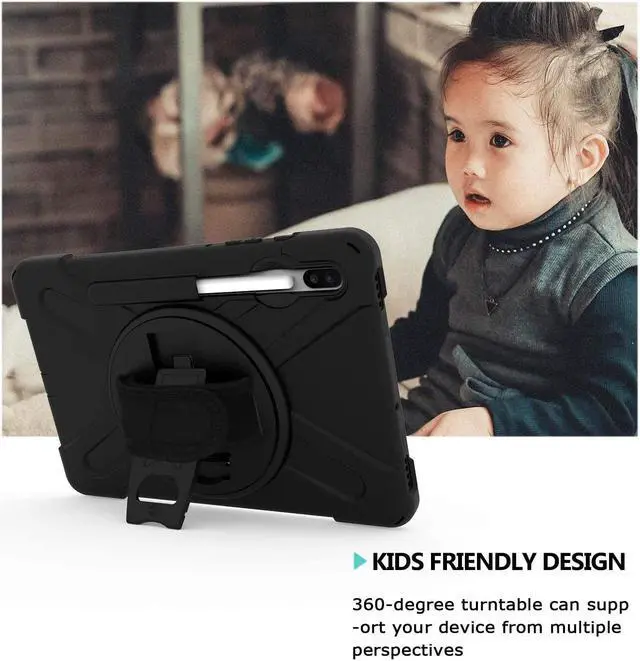 Easily Charge/Sync, Stand & Carry - For your convenience, this cover have cut-outs giving you access to your tablets charging port & earphone jack making this case easy to use and very convenient. Built-in kickstand that flips out and rotates giving you multiple viewing options so you can comfortably use your tablet device allowing you to enjoy, play, and have fun. Includes a removable shoulder-strap so you can carry your Galaxy Tab S7+.