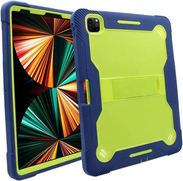 iPad Pro 12.9 Case 5th Gen 2021, Shockproof Rugged Heavy Duty Protection Cover Kickstand Case for Apple iPad 12.9 Inch (Guardian Lime Green/Blue)