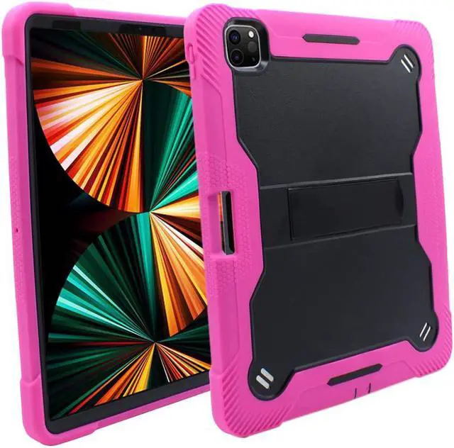 iPad Pro 12.9 Case 5th Gen 2021, Shockproof Rugged Heavy Duty Protection Cover Kickstand Case for Apple iPad 12.9 Inch (Guardian Hot Pink)