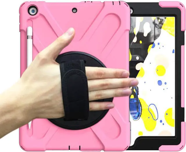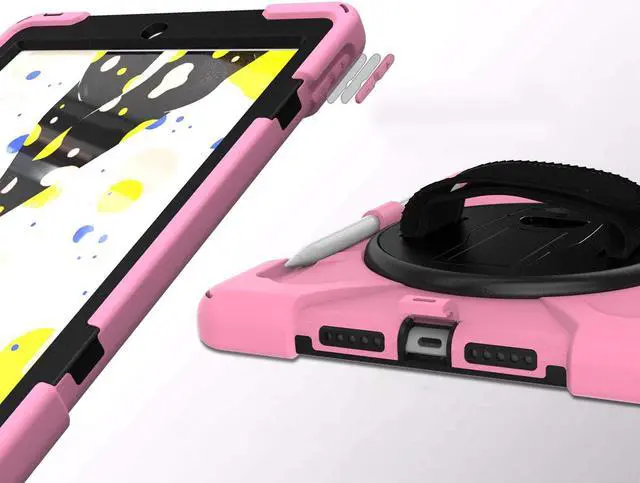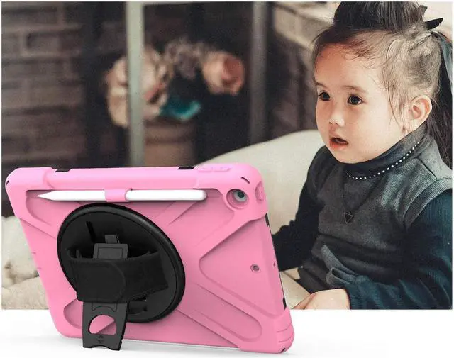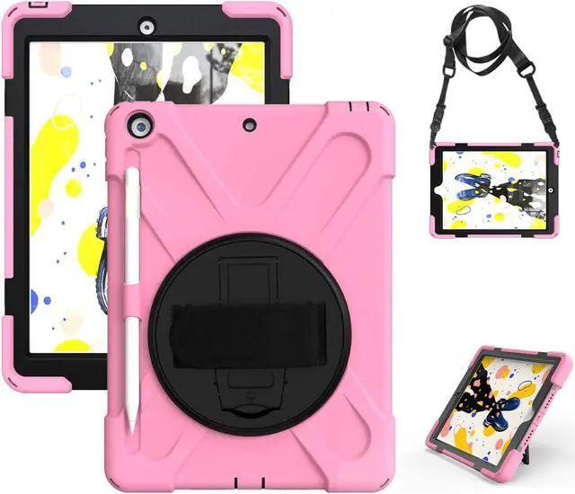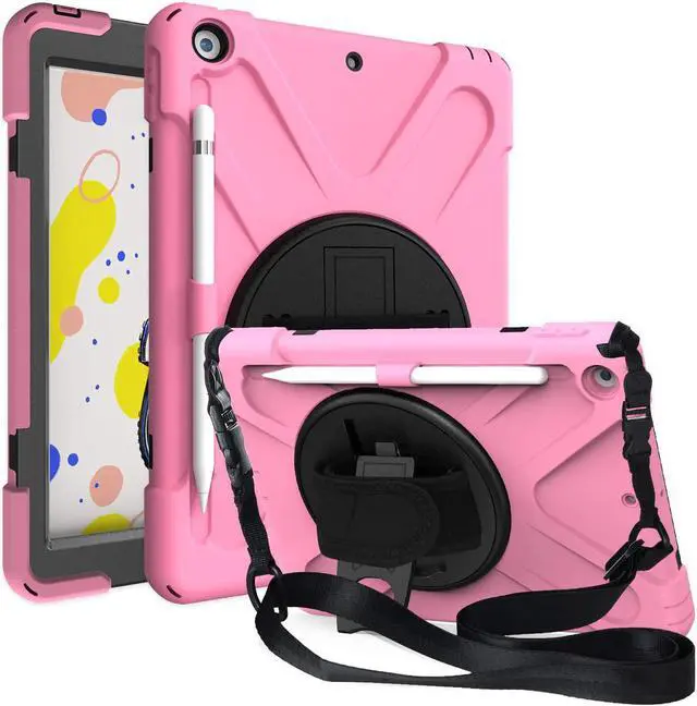 iPad 10.2 9th 8th 7th Gen Case, Shockproof Heavy Duty Rugged Stand Pencil Holder Carrying Strap Sling for Apple iPad 10.2 inch 2021/2020/2019 [Shield Light Pink]