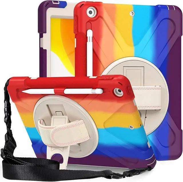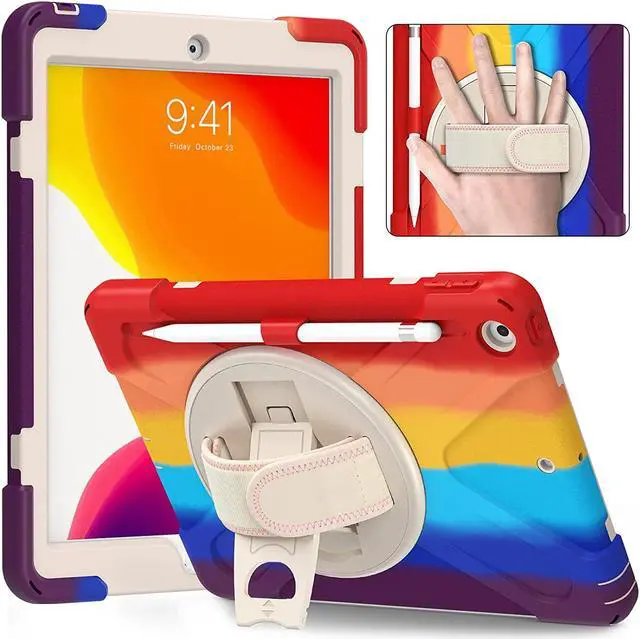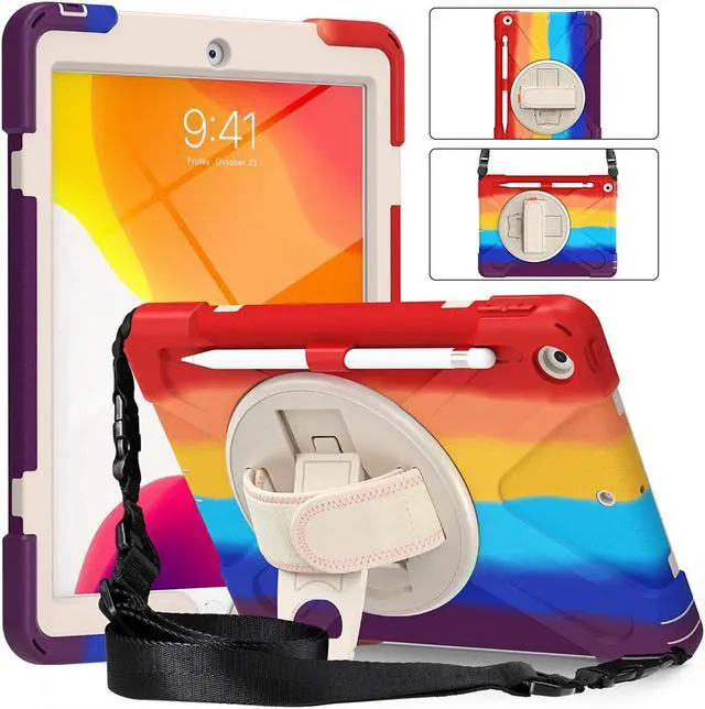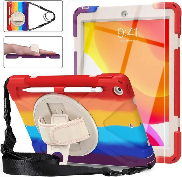Versatile Case - Built-in stand that kicks out allowing you to watch, play, work, live videos, live stream, record or make video calls. Easily hold your tablet securely by using the built-in hand strap when you are on the move. A removable shoulder strap when installed, allows you to carry your tablet easily and comfortably over your shoulder or carry your device over your neck for your iPad 10.2-inch