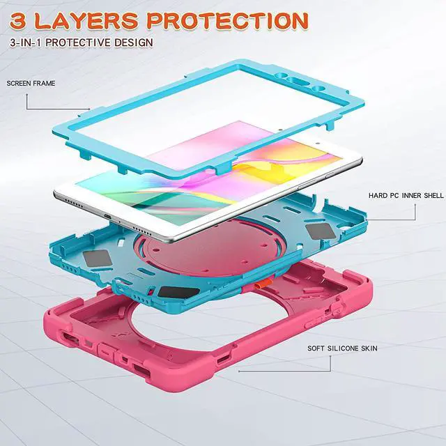 • HEAVY DUTY SHIELD CASE COVER - Designed to fit the Samsung Galaxy Tab A 8.0. Specific cut-outs for the Galaxy Tab A 8.0 2019 T290/T295's charging ports, front and back camera, home button, earphone jack, and volume/power controls. This case gives you total access to your tablets features and functions such as capturing photos/videos, syncing or charging without having to remove the case. Built-in hand strap, kickstand, and includes carrying shoulder strap sling.