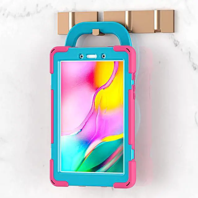 Premium Galaxy Tab A 8.0 (2019) Ring Handle Case, Shockproof Heavy Duty Protection Case for Samsung Galaxy Tab A 8.0 T290/T295 (Pink/Light Blue)