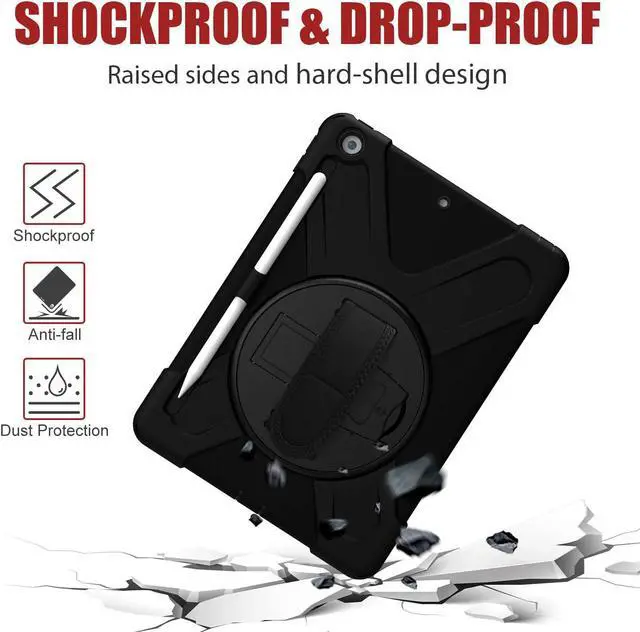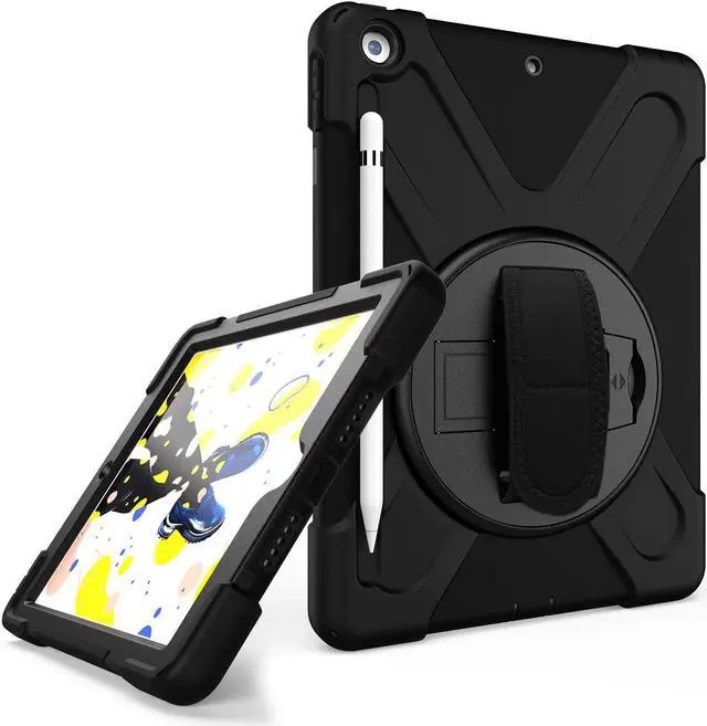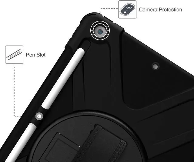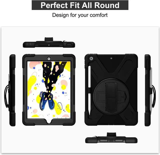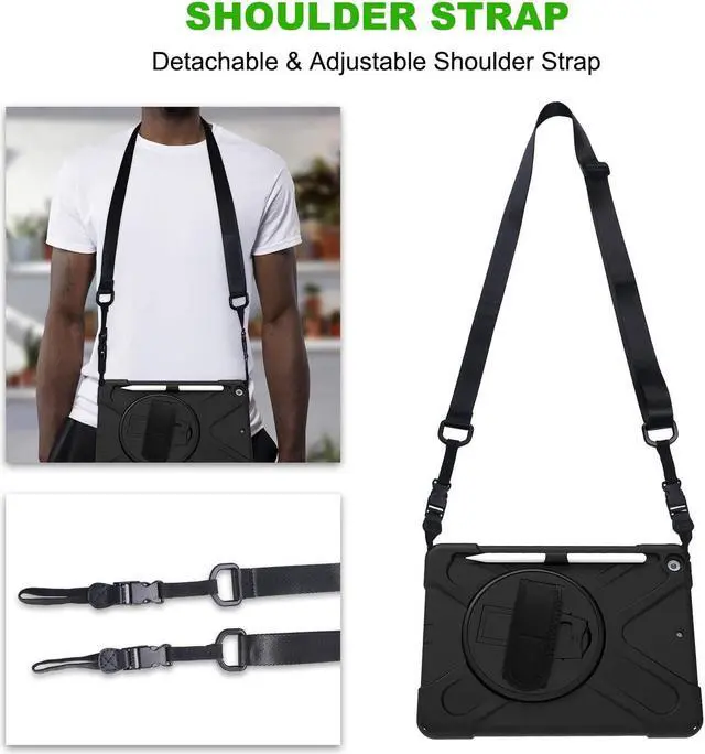 Versatile Case - Built-in stand that kicks out allowing you to watch, play, work, live videos, live stream, record or make video calls. Easily hold your tablet securely by using the built-in hand strap when you are on the move. A removable shoulder strap when installed, allows you to carry your tablet easily and comfortably over your shoulder or carry your device over your neck for your iPad 10.2-inch