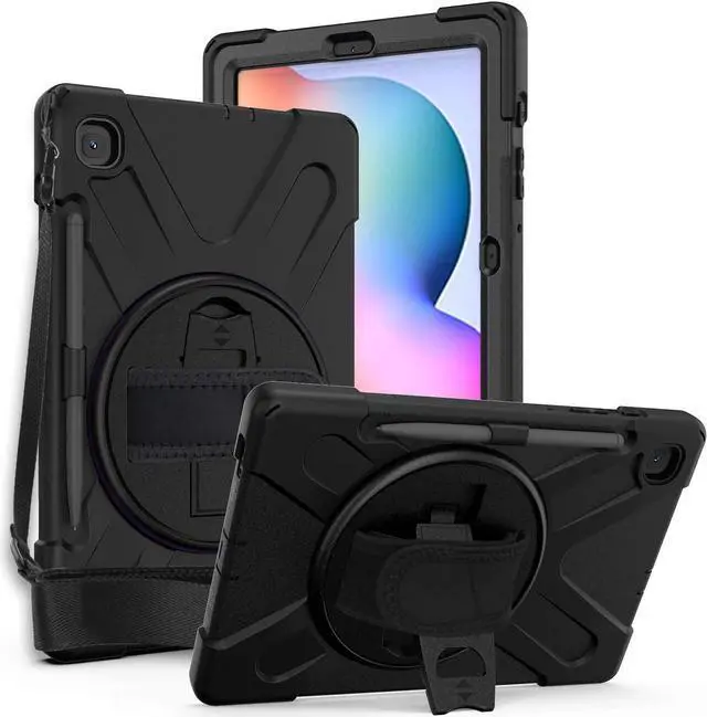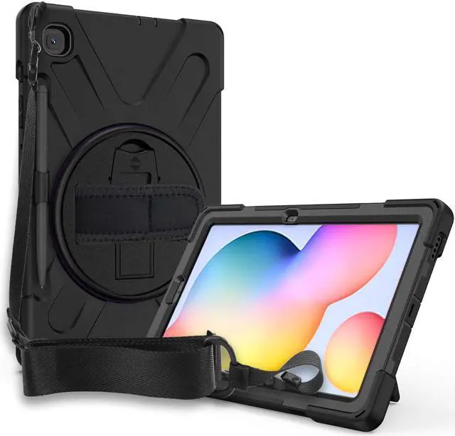 Easily Charge/Sync, Stand & Carry - For your convenience, this cover have cut-outs giving you access to your tablets charging port & earphone jack making this case easy to use and very convenient. Built-in kickstand that flips out and rotates giving you multiple viewing options so you can comfortably use your tablet device allowing you to enjoy, play, and have fun. Includes a removable shoulder-strap so you can carry your Galaxy Tab S6 Lite 10.4-inch tablet device