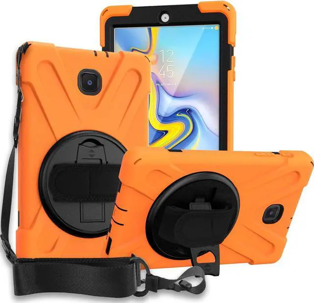 Galaxy Tab A 8.0 T387 Case, Heavy Duty Case Tempered Glass Screen Protector Cover Kickstand Handle Carrying Sling Strap for Samsung Galaxy Tab A 8.0 2018/2019 LTE SM-T387 (Orange)