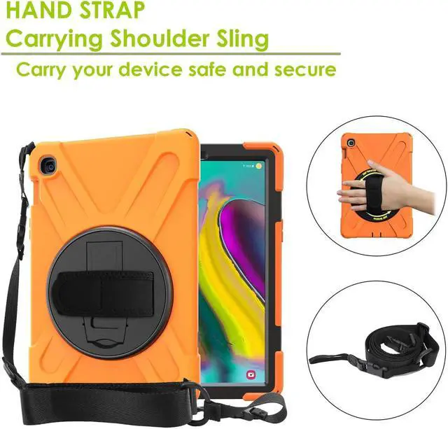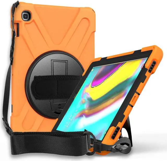 Galaxy Tab A 10.1 Case 2019, T510 T515, Shockproof Heavy Duty Durable Kickstand Shoulder Strap Sling for Samsung Galaxy Tab A 10.1 SM-T510 SM-T515 (Shield Orange)