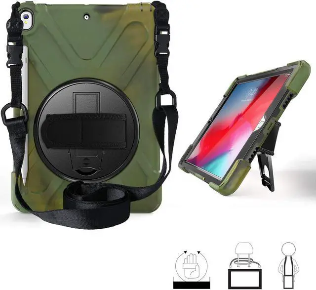 iPad Air 3 10.5 2019 / iPad Pro 10.5" 2017 Case, Heavy Duty Rugged Full-Body Cover, Stand, Hand/Palm Strap, Shoulder Carry Sling for Apple iPad Air 3rd Gen / Pro 10.5-inch (Shield Camouflage)