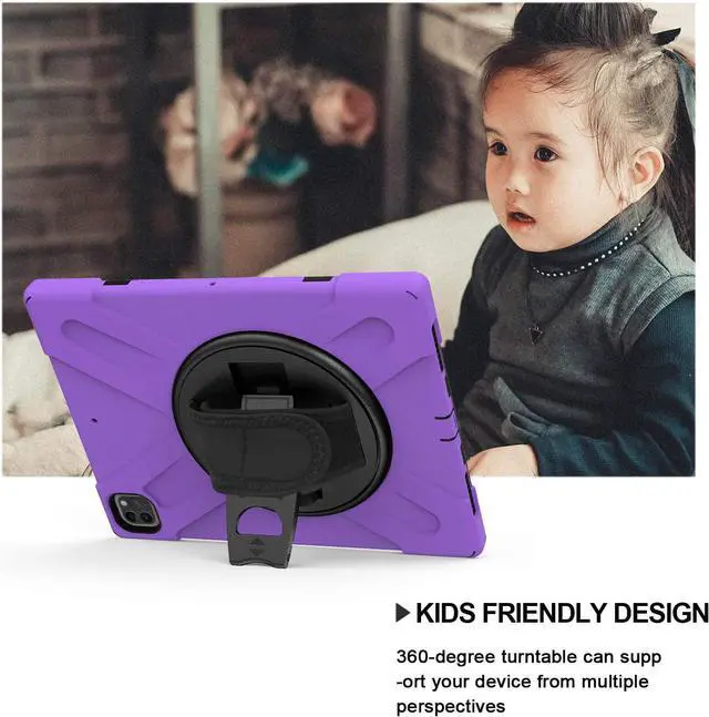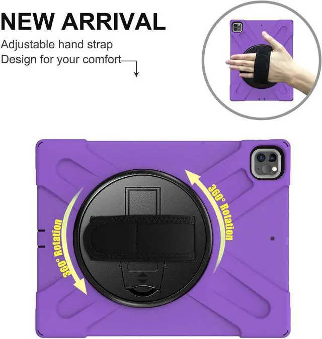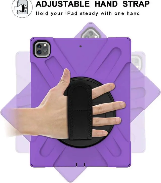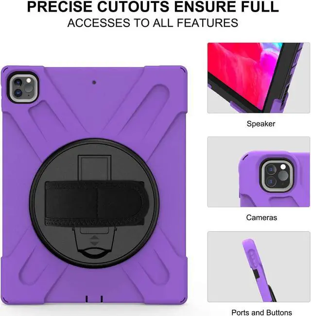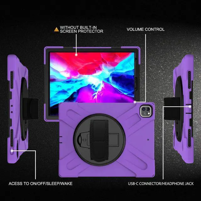 iPad Pro 12.9 2020 Case, Shockproof Heavy Duty Shield Durable Impact Drop-Protection, Kickstand, Handstrap, Case Cover for Apple iPad 12.9 (2020) [Purple]