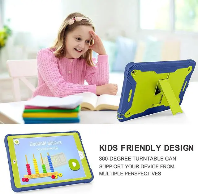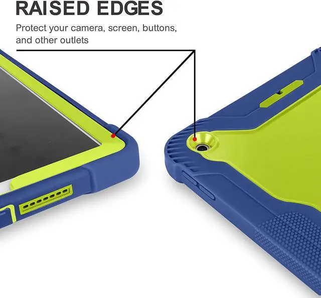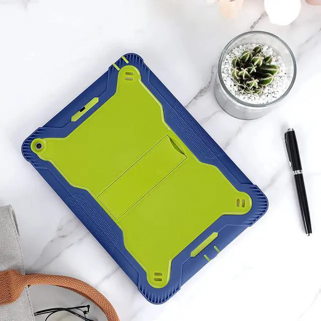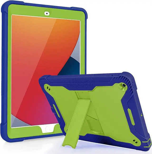 iPad 7th 8th Case, Heavy Duty Rugged Bumper Dual-Layer Protection Cover with Kickstand for Apple iPad 10.2" 7th 8th Gen 2019/2020 [Lime Green in / Dark Blue Out]