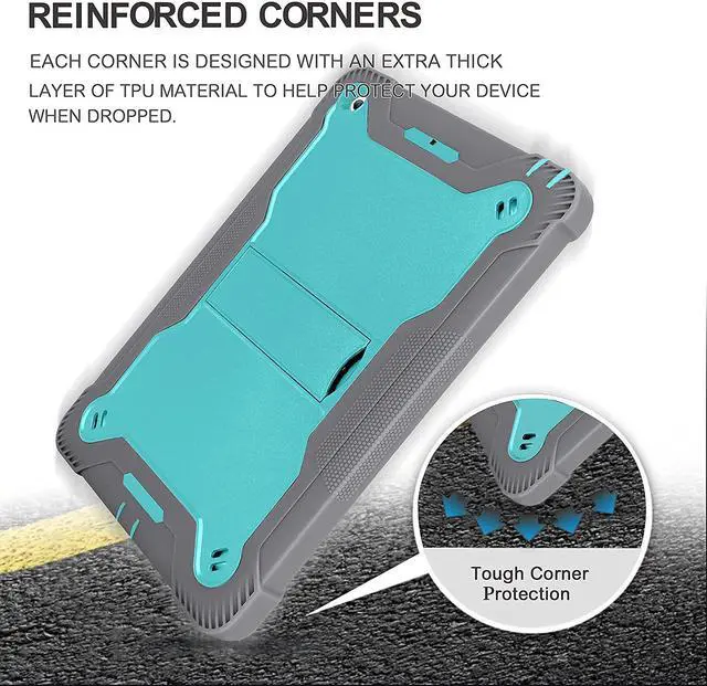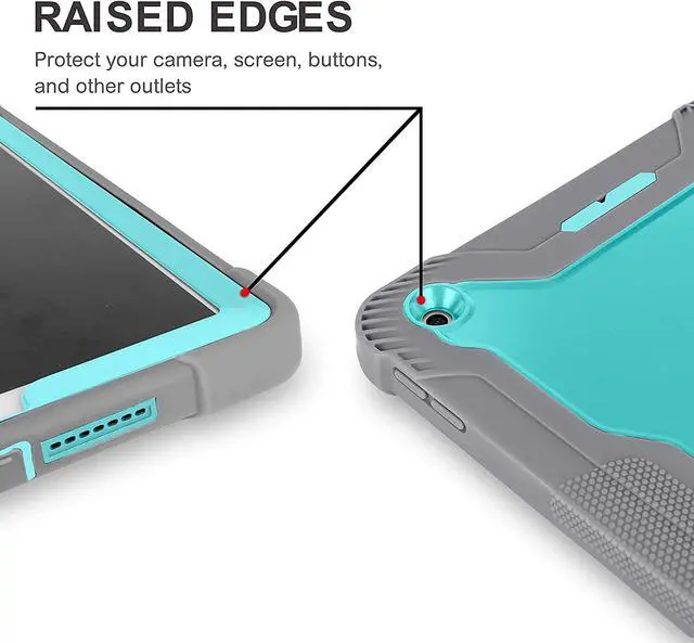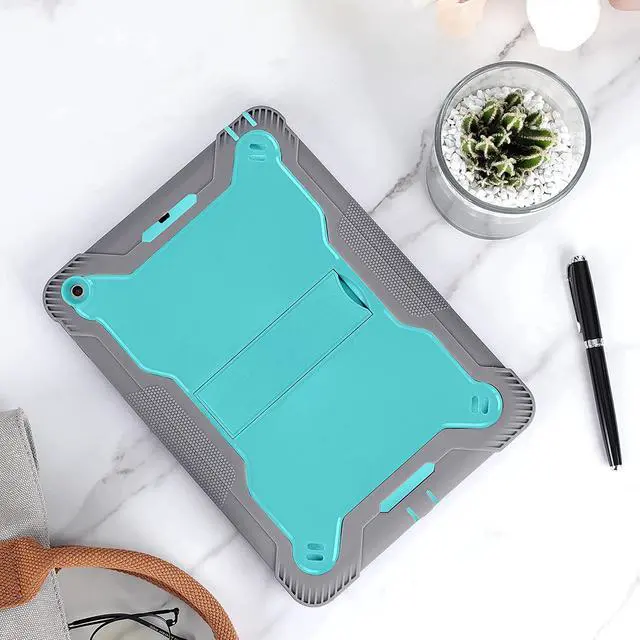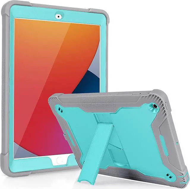 iPad 7th 8th Case, Heavy Duty Rugged Bumper Dual-Layer Protection Cover with Kickstand for Apple iPad 10.2" 7th 8th Gen 2019/2020 [Teal in / Grey Out]
