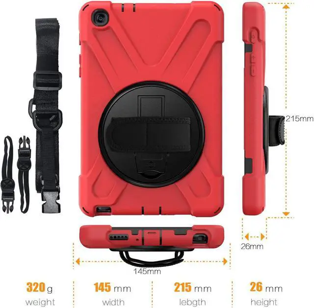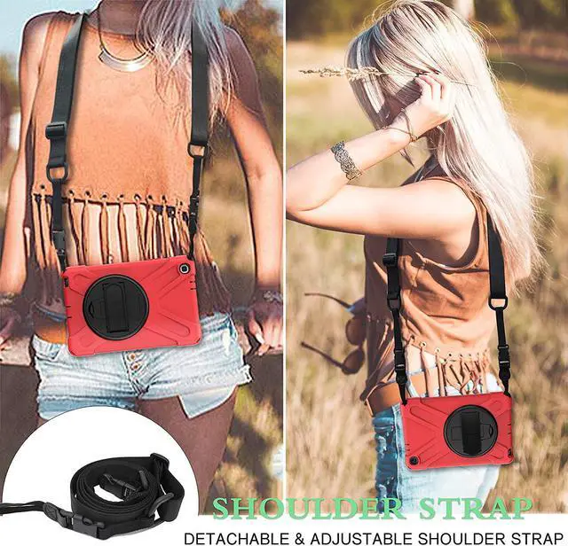 Galaxy Tab A 8.0 P200 Case, Shockproof Heavy Duty Impact Drop Protection Stand Screen Protector Carrying Strap for Samsung Galaxy Tab A 8.0 2019 SM-P200 (Shield Red)