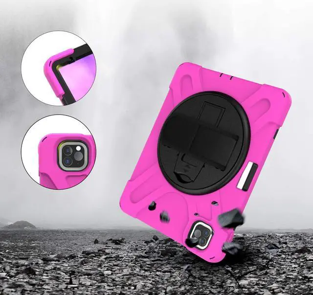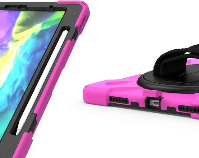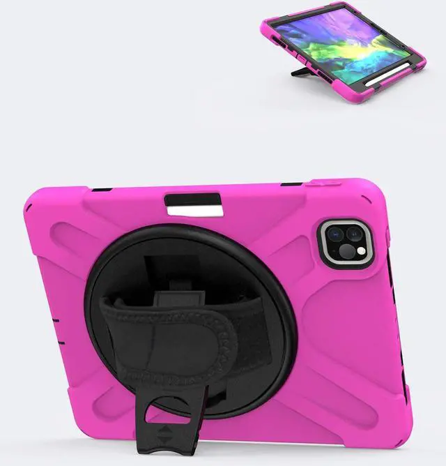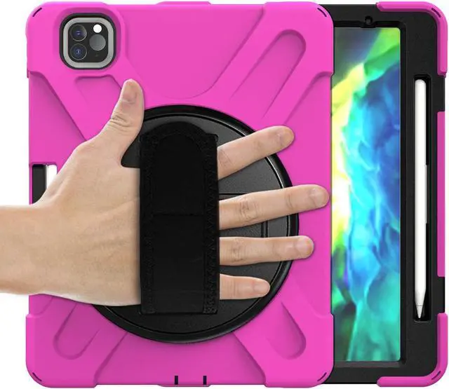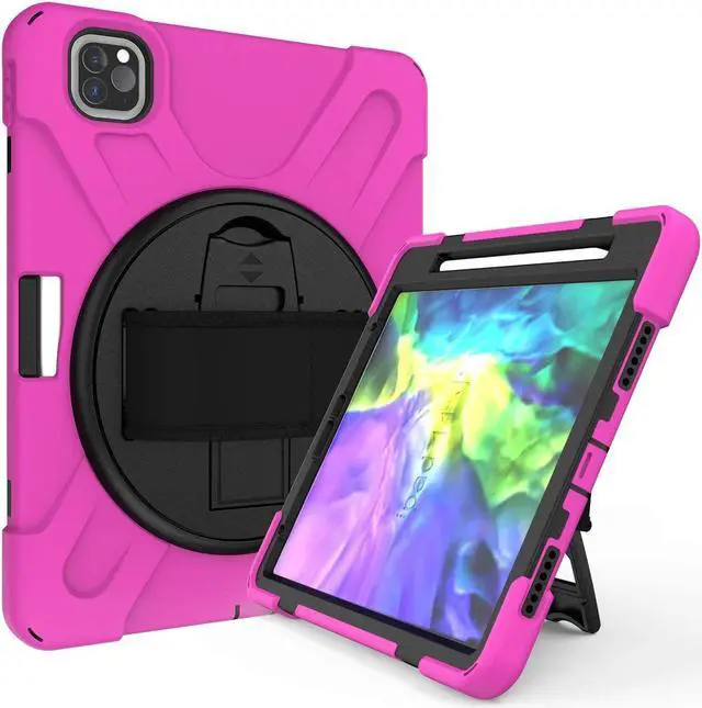 iPad Pro 11 Case 2018/2020, Shockproof Heavy Duty Case Cover Stand Hand Strap for Apple iPad Pro 11-inch 1st 2nd Gen [Shield Hot Pink]