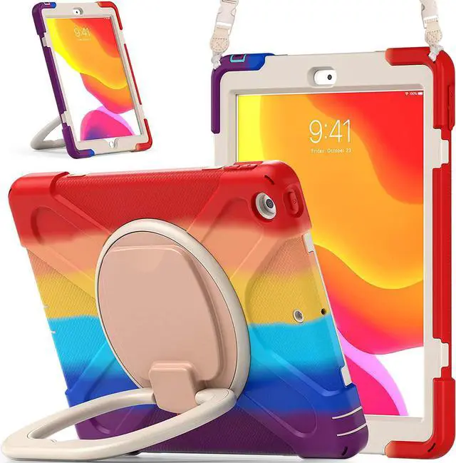 Easily Charge/Sync, Stand & Carry - For your convenience, this cover have cut-outs giving you access to your tablets charging port & earphone jack making this case easy to use and very convenient. Built-in kickstand that flips out and rotates giving you multiple viewing options so you can comfortably use your tablet device allowing you to enjoy, play, and have fun. Includes a removable shoulder-strap so you can carry your iPad 7th & 8th Generation