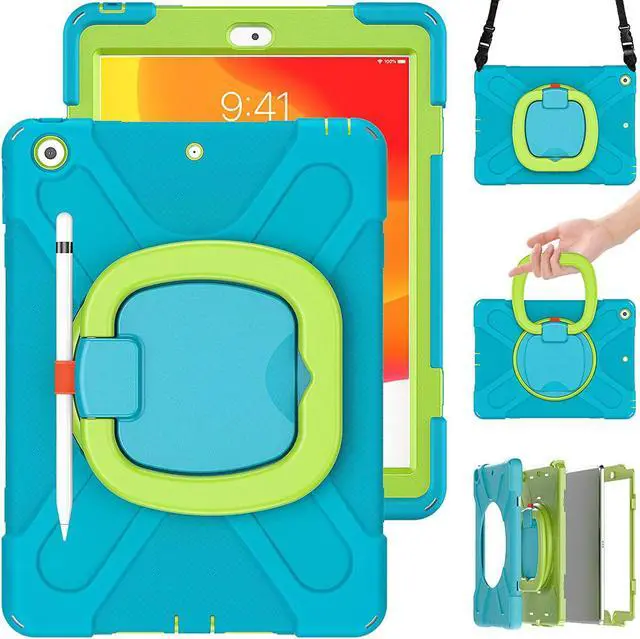 Easily Charge/Sync, Stand & Carry - For your convenience, this cover have cut-outs giving you access to your tablets charging port & earphone jack making this case easy to use and very convenient. Built-in kickstand that flips out and rotates giving you multiple viewing options so you can comfortably use your tablet device allowing you to enjoy, play, and have fun. Includes a removable shoulder-strap so you can carry your iPad 7th & 8th Generation