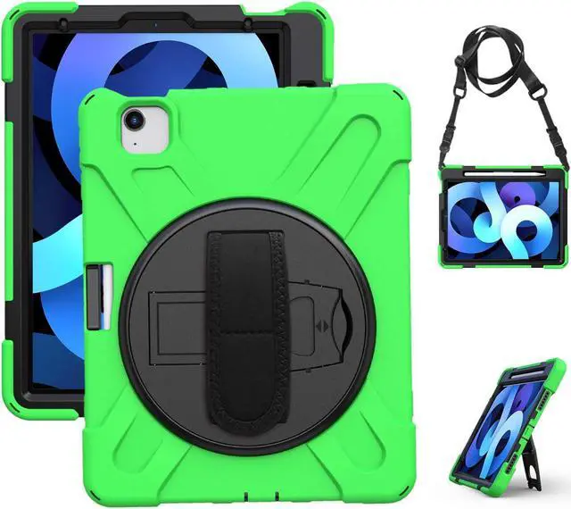 iPad Air 10.9 Pro 11 1st 2nd Gen Case Cover, Heavy Duty Shield Hand/Palm Grip Strap Shoulder Strap Sling for Apple ipad Air 4 Pro 11 2018/2020 [Shield Green]