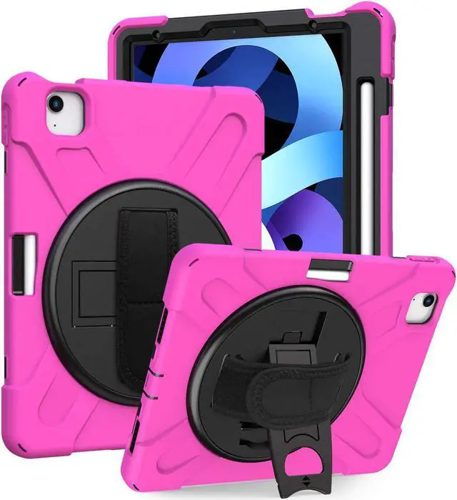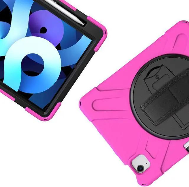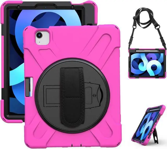 iPad Air 10.9 Pro 11 1st 2nd Gen Case Cover, Heavy Duty Shield Hand/Palm Grip Strap Shoulder Strap Sling for Apple ipad Air 4 Pro 11 2018/2020 [Shield Hot Pink]